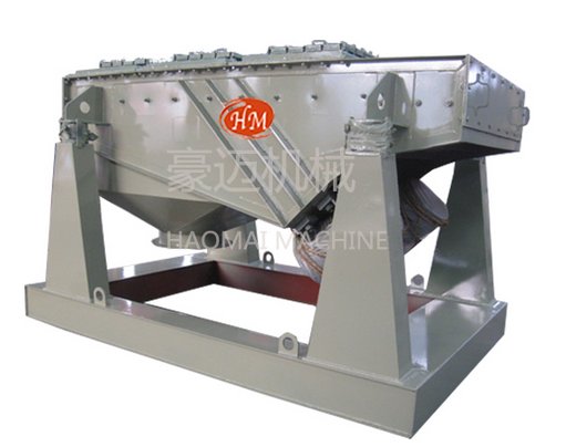 该筛机依靠相同的两台振动电机反方向自同步旋转,使筛体沿激振力方向做周期性往复运动,迫使物料在筛面上做连续抛物运动,煤粉迅速松散透筛,木屑与纤维等杂物留在筛网上部,定期由人工消理。