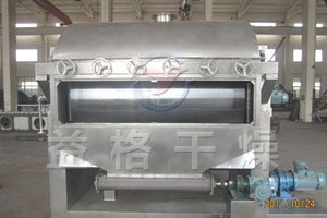 3、干燥时间短。物料的干燥周期一般只有10-300秒,在适合于热敏性物料。若将滚筒干燥机设置在真空器中,则可在减压条件下运行。