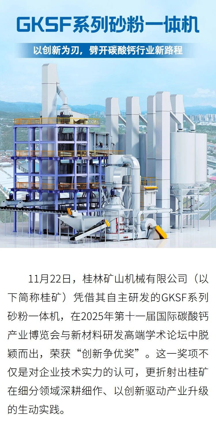 近日,在上海跨国采购会展中心举办的上海国际非金属矿工业展览会上,桂林矿机凭借其专利产品——砂粉一体机,成功斩获由北京粉体技术协会与中国粉体网联合颁发的“2025粉体行业优秀产品奖”。 荣誉的背后,是