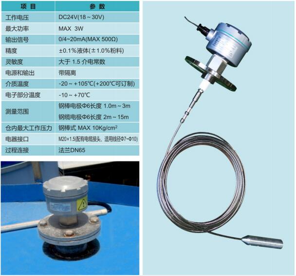 在固体物料测量中,改变不同的固体物料进行测量时,电位尺无需重新标定;同时不受物料的密度改变、形状改变、大小变化、颜色、仓内粉尘、蒸汽、仓内压力、挂料等影响,同时不受外界无线电干扰、噪声的干扰。既可以测量极低介电常数物料,也可以测量优质粉煤灰、炭黑等低密度物料。