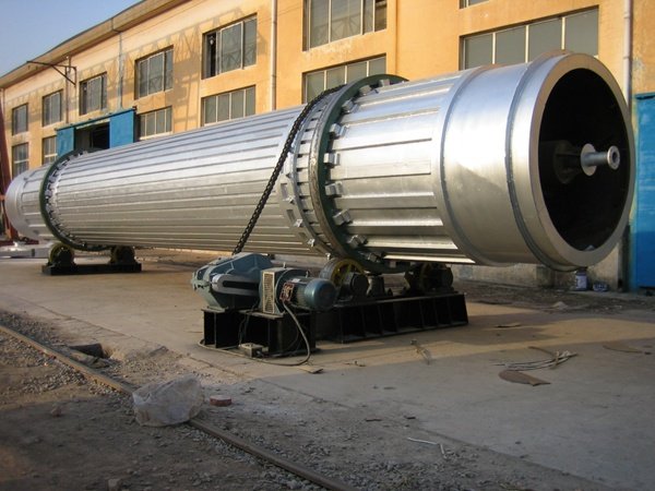 滚筒列管式干燥机主要由筒体、内加热管束、外加热列管、滚圈、托轮、挡轮、传动机构、高温球阀等部分组成,在其内、外加热管中通过180℃-300℃高温导热油,主体略带倾斜并能回转。