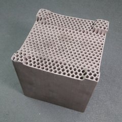 蜂窝陶瓷蓄热体作为高温空气燃烧技术的关键和核心部件,要求蓄热的蜂窝陶瓷蓄热体具有良好的蓄热特性、低阻力特性、良好的热震稳定特性以及耐高温特性,从而保障应用HTAC技术的工业窑炉达到预期的节能、环保以及提高产量的目的。为此,我公司在蜂窝陶瓷蓄热体生产中严格进行原材料配方及工艺制度的优化设计,生产的莫来石、堇青石、莫来石复合质、堇青石复合质、碳化硅和刚玉等材质的蜂窝陶瓷蓄热体具有耐高温、抗腐蚀、热震稳定性好、强度高、蓄热热量大、导热性能好等显著优点,完善地配合HTAC技术的预期效果。