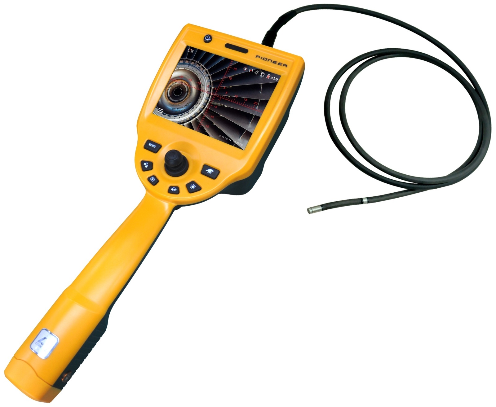 (5) 导向系统:电动控制360°全方位连续导向,单方向转向角度大于160°,并配有转向速度快慢调节、一键锁定、步进微调、自动复位功能。可以更加快速、准确查找缺陷,提高检测效率。