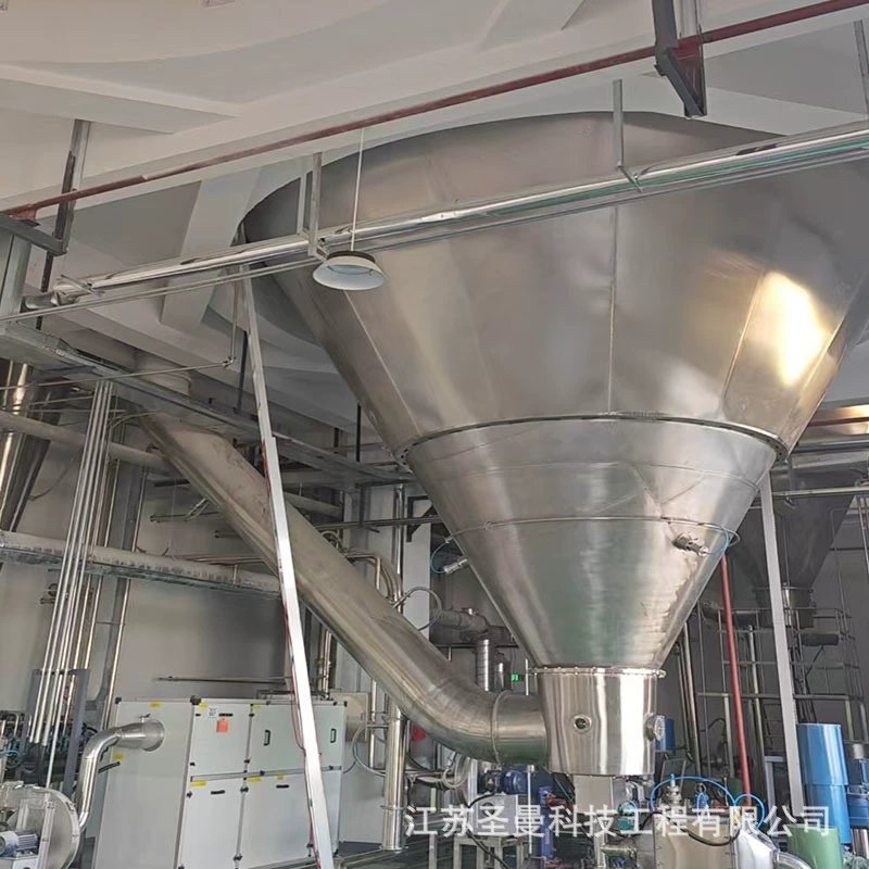 [0002] 喷雾干燥塔是用于生物农药,医药,食品微生物的干燥的设备,可将溶液状态的物料喷入喷雾干燥塔中,物料干燥后呈固体粉末状态出料;由于干燥过程是在瞬间完成的,产成品的颗粒基本上能保持液滴近似的球状,产品具有良好的分散性,流动性和溶解性,适宜于热敏性物料干燥。
