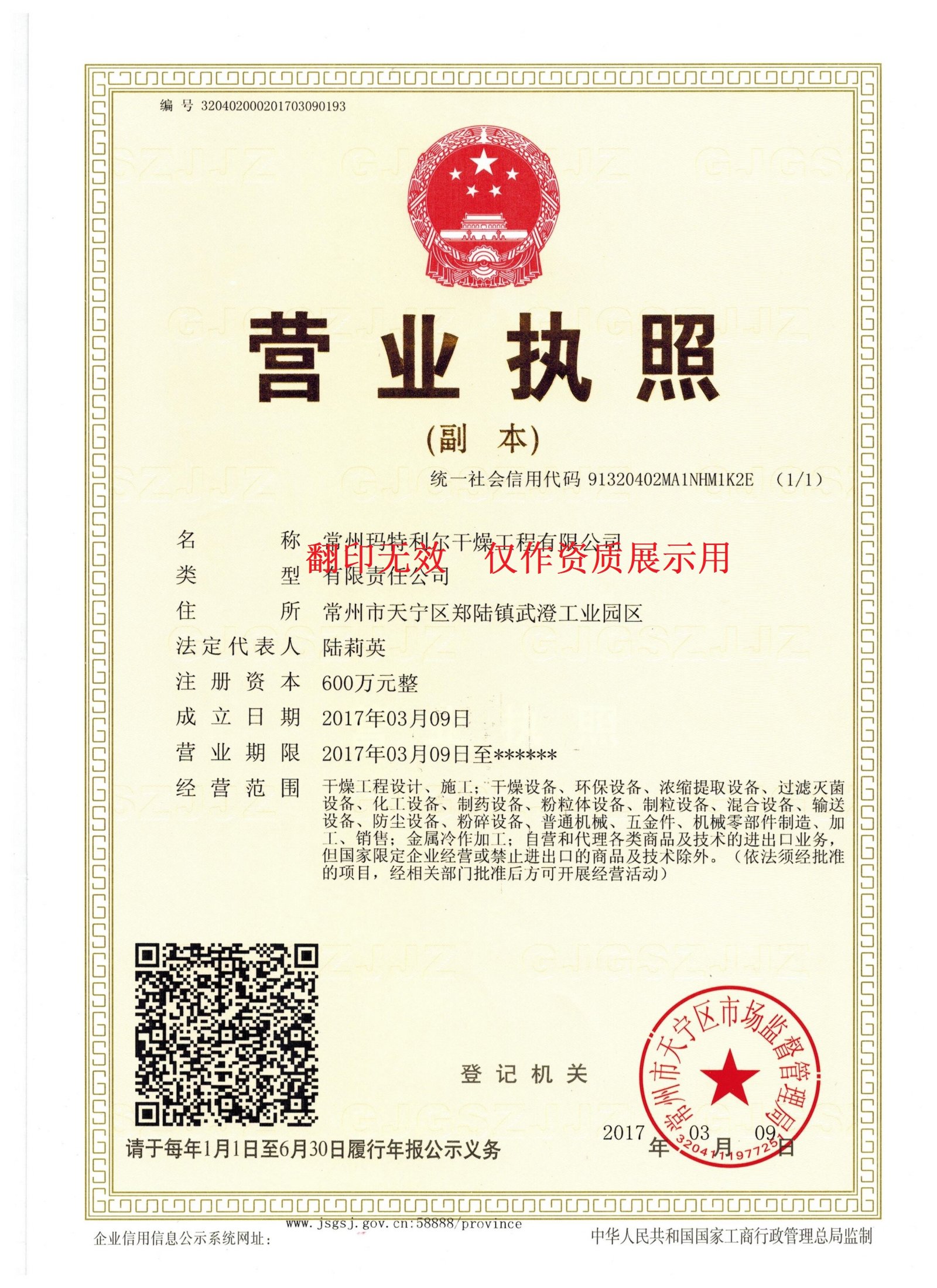 近日,常州市普兰达干燥设备有限公司完成工商变更,已经正式更名为常州玛特利尔干燥工程有限公司!为了更好地发展高精科技,为了更好地提升企业生产和创新技能,发展更好的国内外市场,即日起常州市普兰达干燥设备有