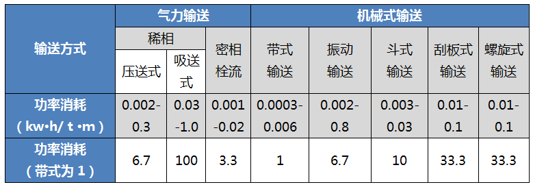 与其他输送形式相比,气力输送的缺点是动力消耗大,稀相气力输送的动力消耗为斗式提升机的2~4倍,为带式输送机的15~40倍。而且,输送距离愈近,这种现象愈明显。