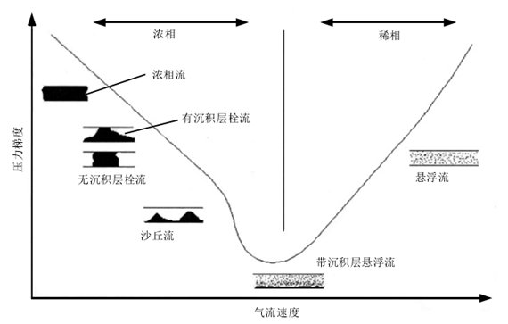气力输送中不同输送模式的出现主要由三方面的因素综合决定的: