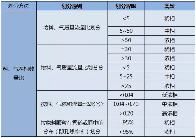 气力输送系统有多种不同的分类方法,可按气力输送的输送装置型式、体现气力输送的实质来分类,也可按状态相图来分类。对于不同类型的气力输送系统,其流动差异很大,相互间的流动规律也不能通用。