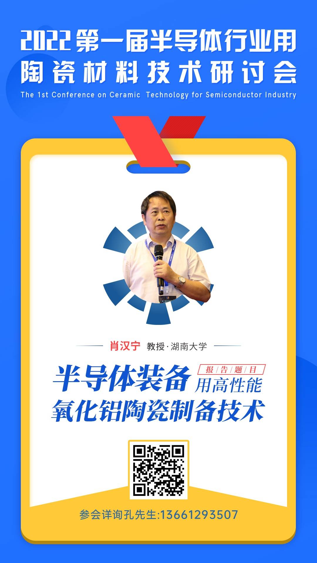 在此背景下,中国粉体网将在山东济南举办第一届半导体行业用陶瓷材料技术研讨会,届时,来自湖南大学的肖汉宁教授将带来题为《半导体装备用高性能氧化铝陶瓷制备技术》的报告。在报告中,肖汉宁教授将针对半导体装备用陶瓷零部件的应用需求,介绍制备高性能氧化铝陶瓷的原料特性、成型工艺、烧成技术、精密加工方法等,并分析一些典型氧化铝陶瓷零部件在半导体装备中应用现状,同时提出我国半导体装备用陶瓷零部件的发展趋势。