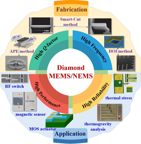 新一代半导体-金刚石,具有5.5eV的超宽带隙,被称为终极半导体,是当前国际材料科学研究的前沿和热点之一。单晶金刚石由于其无与伦比的材料特性,具有理论最高共振频率和最高品质因子,确保了制备器件的灵敏度、可靠性和响应速度,成为克服传统半导体基MEMS本征缺陷的理想材料。