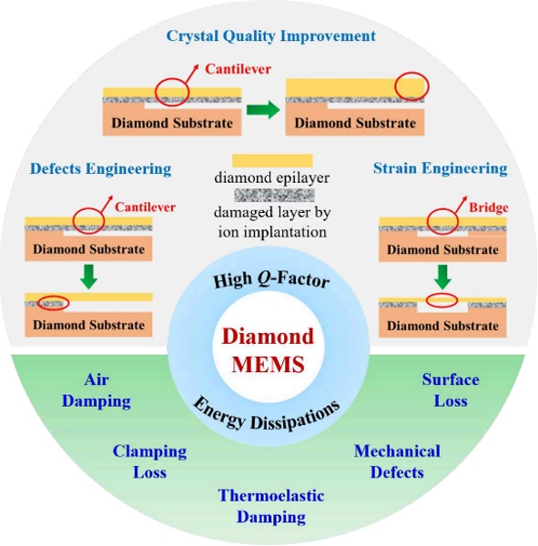 中国粉体网讯 近日,日本国立物质材料研究所廖梅勇主席研究员团队的AMR述评文章“Low-Energy Dissipation Diamond MEMS”在线发表。文章基于其实验室开发的“智能剪切”法所制备的器件,概述了实现超高品质因子单晶金刚石微机电系统的最新研究进展与策略。这些策略代表着推动金刚石MEMS谐振子性能提升与应用扩展的关键技术。