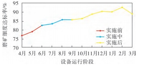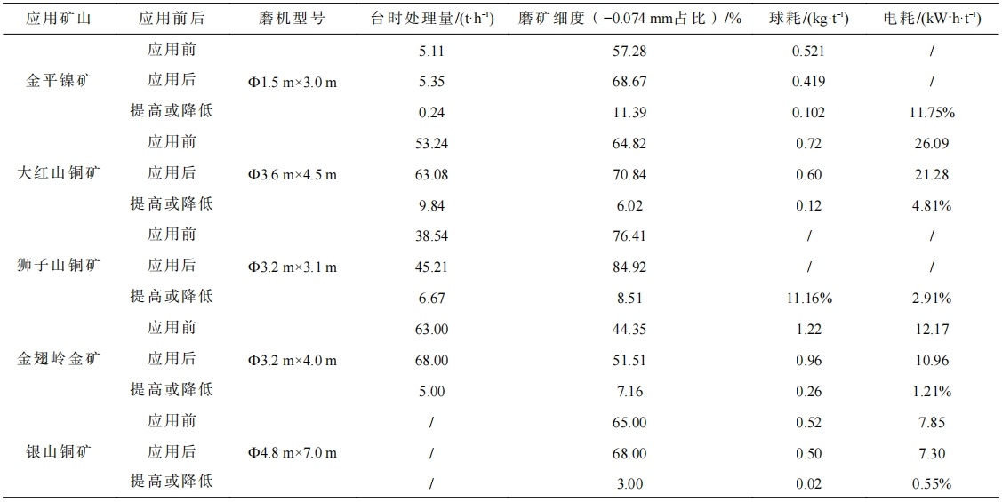 生产实践证明,加球机的应用对于各项磨矿指标都有明显提升。城门山铜矿选矿厂加球机投运后,球磨机磨矿细度达标率相比投入前提升了近13%。依照磨矿效率对于选矿厂经济效应的影响关系,磨矿效果提升1%,每台球磨机处理量就能提高1.5t/h。