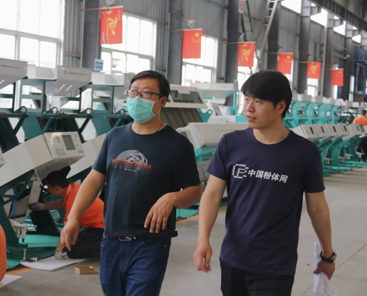 中国粉体网宋总和捷泰汪总在捷泰厂房合影