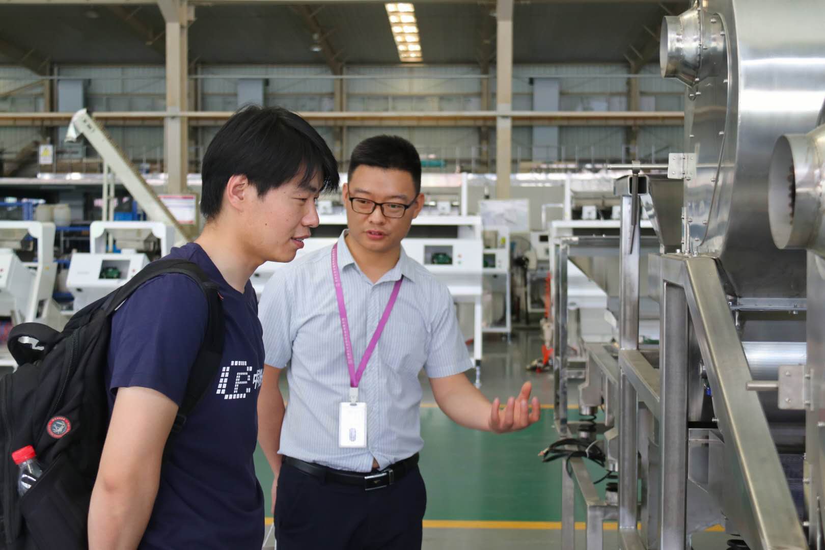 会谈之后,泰禾光电市场部人员陪同中国粉体网宋总参观工厂车间。
