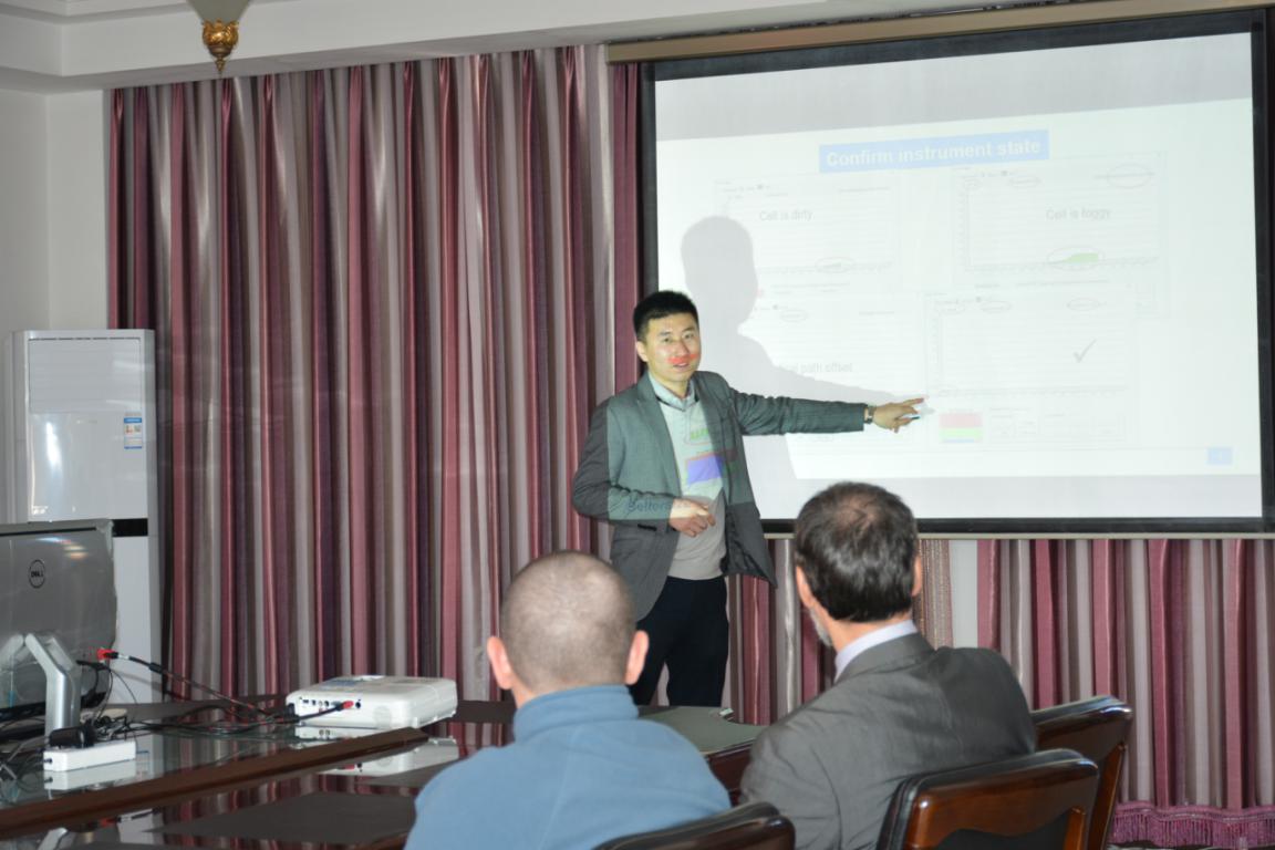 访问期间,百特国际服务经理侯东瑞详尽的介绍激光/图像粒度粒形分析仪——Bettersizer S3 Plus、采用正反傅里叶结合技术的激光粒度仪——Bettersizer 2600,并用这两款仪器测试了俄罗斯联邦的标准样品和重金属粉末样品,并详细讲解了干法、湿法测试中的测试条件和技术要点,所测结果完全符合俄联邦标准所规定的各项指标。此后几天,俄罗斯客人还对百特其他仪器一一进行了实际操作和学习,他们对百特仪器智能化设计给予高度评价。