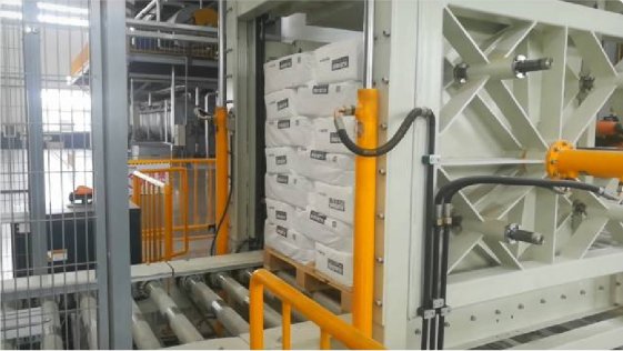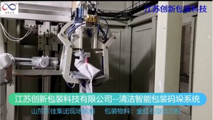 近日,由江苏创新包装科技有限公司研发生产的清洁智能包装码垛系统在山东东佳集团成功运行,用于金红石钛白粉的计量包装码垛。 该生产线具有以下特点:包装精度高:每包25Kg,误差在正负50g,在线计量超差剔除;袋口残留物料自动进入袋内,超声波封口更牢固;三个品种共线运行,采用图像识别自动分类码垛,再共线整