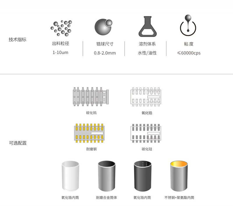 高能研磨区域覆盖面大、效率高,可轻松应对中高粘度物料。采用高导热性研磨桶,转子内部、前盖板等部位高效冷却,有效带走研磨过程中产生的热量,确保腔内物料温度稳定。采用动态筛网出料,出料面积大、不堵塞、出料顺畅。广泛应用于UV油墨、胶印油墨、高档汽车漆、船舶涂料钛白粉、农药、颜料、染料、色浆等行业领域。