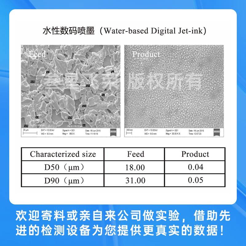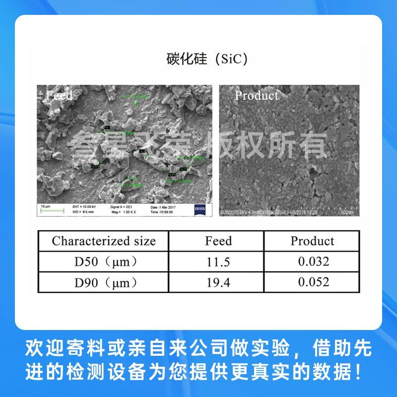 陶瓷材料(氧化铝、氧化锆、碳化硅、碳化硼、碳化锆、碳化钨、硼化锆、氮化硼、立方氮化硼等)、碳材料(碳纳米管、碳纤维、碳复合材料和石墨烯等)、能源材料(磷酸铁锂、钴酸锂、晶体硅等)、隔膜材料、硅碳负极、固态电解质、数码喷墨、矿物材料、纳米涂料、油墨、颜料、色浆、农药、医药、化妆品、纳米新材料等等。