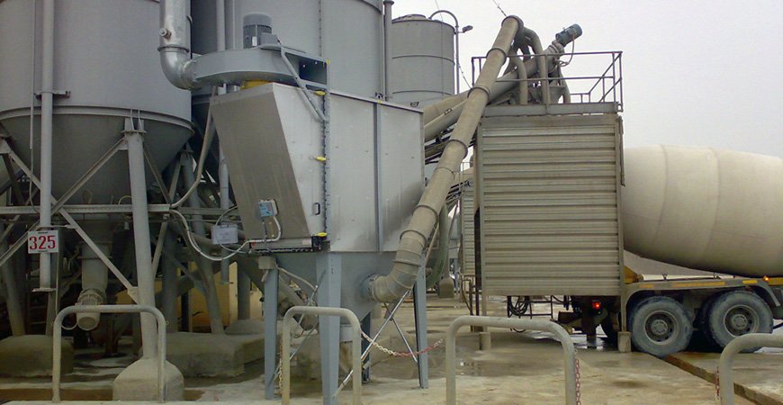 DRYBATCH R01 收尘机完全满足干式散料混凝土工厂在装载混凝土搅拌车时的无尘要求。