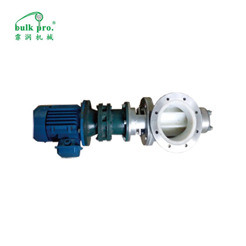 旋转阀(俗称旋转给料器或星型给料器),是应用于固体物料(粉末、颗粒物料、粉粒混合物)输送系统中用来卸料、包装、混合、除尘、计量、定量输送的专用设备。工作原理是通过电机、减速机的传动将一个带有等分结构的叶轮在壳体内旋转,从壳体上部料仓或给料装置的物料填充在叶轮的型腔内,物料随叶轮的旋转到壳体的下部卸出。可以按照输送系统的要求均匀地、连续不断地向下游卸料。