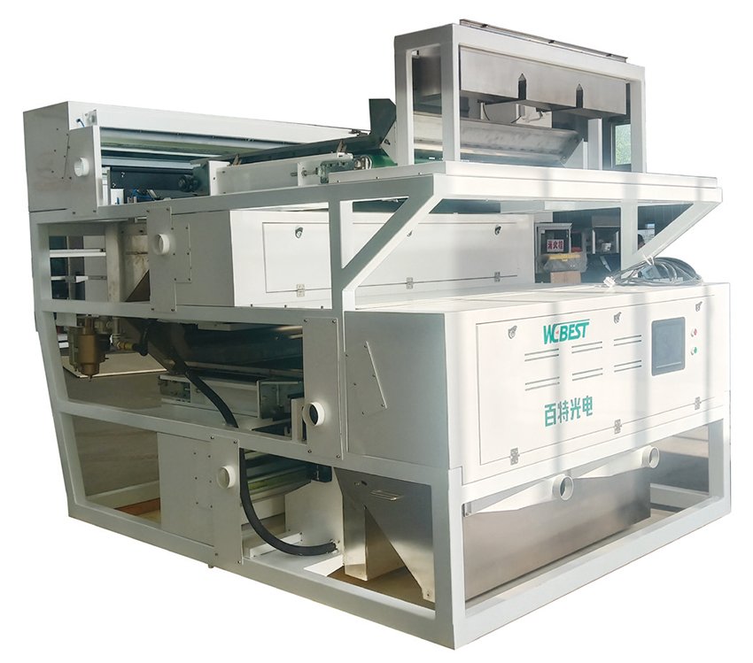 3、高敏感CCD传感器拥有5340像元和12K扫描速度,配合独特的扫描方式,高清识别,高速分选。