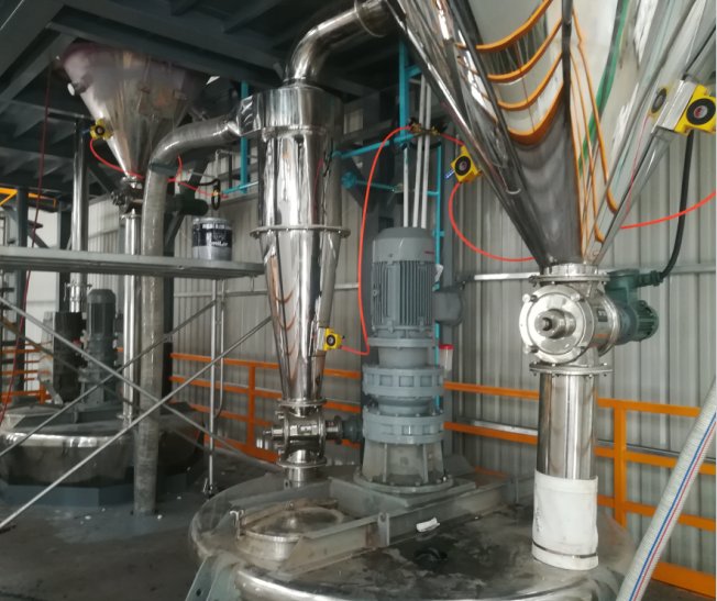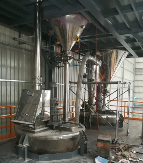 公司出口缅甸的WP农药气流粉碎混合系统安装调试中