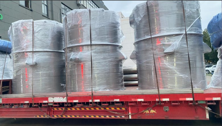 在金川集团对此项目立项之初,我司就安排技术工程师全程跟踪和配合,并根据我司在氟化工行业多年的经验,为此项目提供了相关数据和设计方案,也因此得到了客户和设计院的认可。经过客户对我司的实地考察以及对我公司相关资质的审查,最终我司通过了金川集团的供应商资格审查,并最终与金川集团签定了三套气流粉碎系统设备采购合同;经过两个多月的加班加点,我司保质保量地完成了三套设备的生产制造,并对所有机电和仪表进行了通电空载运转和测试;同时邀请客户来我司现场进行出厂前的初步验收,最终于2024年12月12日发货,相关发货图片如下:
