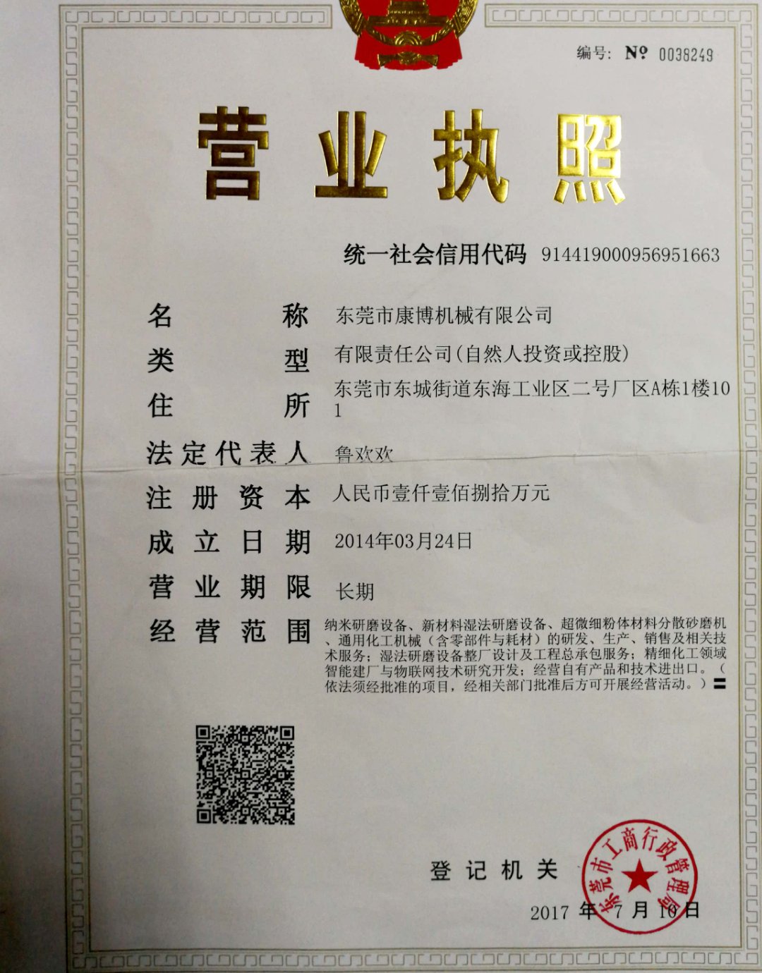 | 适用物料 | 水性、溶剂型浆料的纳米分散研磨 | 型号 | 康博CNB-3L |