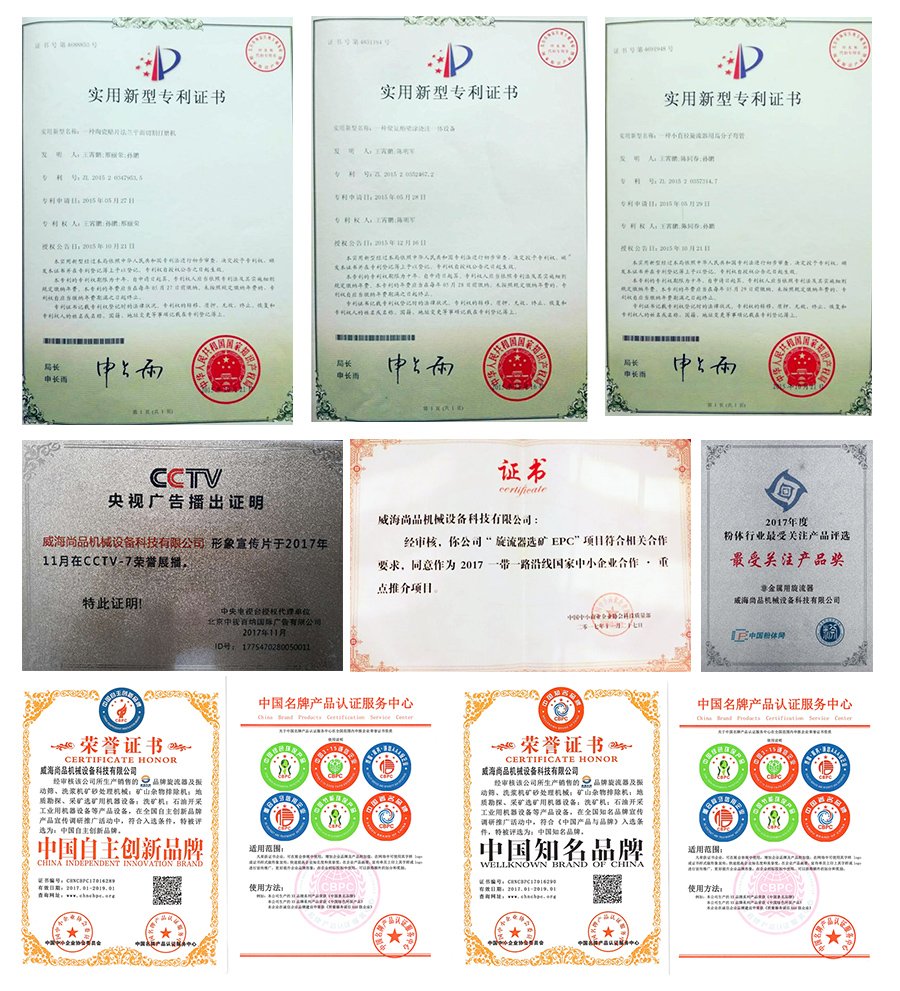 公司非常重视科技研发,大力开展校企合作,已经与国内清华大学、华东理工大学、山东科技大学、山东理工大学等知名院校合作,并荣获19项发明专利和实用型专利。在发展过程中,公司也得到了广大客户与社会各界的一致认可。近几年来,公司先后被政府各级职能部门授予“中国知名品牌”、“中国自主创新品牌”,“旋流器行业首家登陆CCTV的专业品牌”,“2017年粉体行业最受关注设备”,“2017年荣获一带一路旋流器选矿EPC推荐企业”等荣誉称号,被矿业界评选为“2017年度10强矿机企业之一”,拥有自主矿物加工技术中心。
