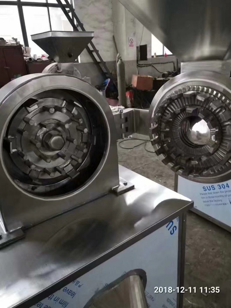 本机组利用活动齿盘和固定齿盘间的相对运动,使物料经齿冲击、摩擦及物料彼此间;冲击而获得粉碎。粉碎好的物料经旋转离心力的作用自动进入捕食袋,粉尘由吸尘箱经布袋过滤回收。该机按“GMP”标准设计,全部用不锈钢材料制造,生产过程中无粉尘飞扬。且能提高物料的利用率,降低企业成本。