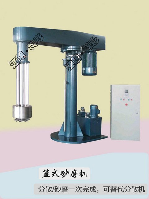 蓝式研磨机 蓝式研磨机在分散时,同时实现研磨功能,自吸叶泵把物料带入研磨篮,内装氧化锆珠在棒销带动下,对物料剪切、挤压、碰撞、溶解作用,细化颗粒,从小孔排出,高速分散盘强剪切作用,形成湍流,上下翻滚搅拌,混合后再进入研磨篮,循环往复,分散研磨一体化工作。 对物料细度要求高的油漆、涂料、新材料、颜料、油墨、色浆、染料等产品进行分散,篮内研磨珠对物料持续细化,可代替普通分散机使用,产品更加匀质,细腻。