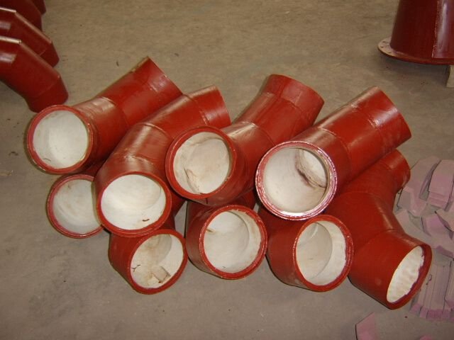 耐磨弯头的磨损一直是影响安全文明生产的一个因素, 随着科学技术不断发展,材料也不断创新,相继出现铸石、铸钢、 合金、离心浇注复合陶瓷等材料。其中管道内衬氧化铝陶瓷以其高耐磨性、高硬度、耐氧化、耐腐蚀性好和极高的耐高低温强度性能,已成为一种应用广泛耐磨材料,占据了世界特种陶瓷市场份额(耐磨材料)的80%左右。