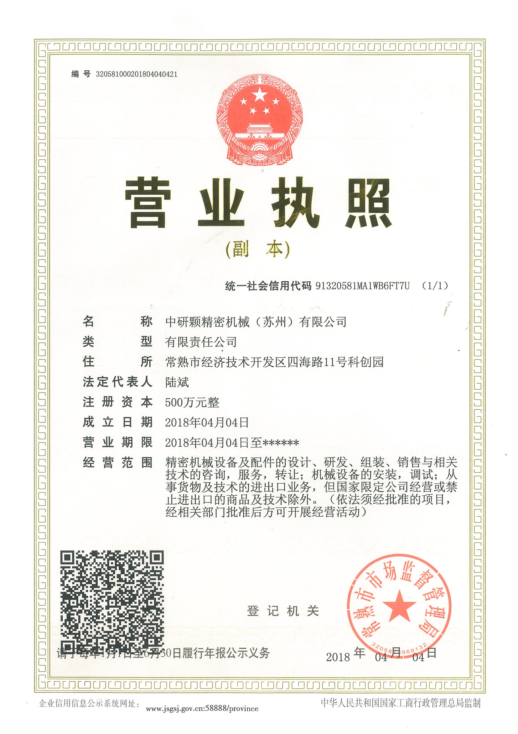中研颗精密机械(苏州)有限公司企业类型