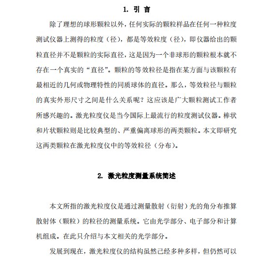 用激光散射法测量大颗粒时使用衍射理论的误差