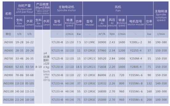 有JDD系列钙基粉高效抗结露组合形式型双转子选粉机的详细技术参数吗?