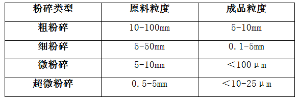 超微粉碎技术粉体工程中的一项重要内容,包括对粉体原料的超微粉碎、高精度的分级和表面活性改变等内容。据原料和成品颗粒的大小或粒度,粉碎可分为粗粉碎、细粉碎、微粉碎和超微粉碎4种类型。