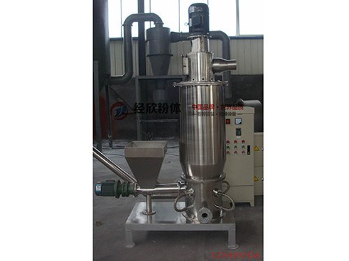 压缩空气经过滤干燥后,通过拉瓦尔喷嘴高速喷射入粉碎腔,带动物料在高压气流的交汇点反复碰撞、磨擦而粉碎,粉碎后的粗细混合料在负压风机的作用下到达分级区,在高速旋转的分级涡轮产生的强大离心力作用下,使粗细物料分离,达到粒度要求的物料通过分级轮进入旋风分离器和除尘器收集,粗颗粒下降至粉碎区继续粉碎。