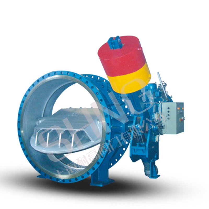因此,该类阀门为节能产品。关闭时,液控装置分快关、慢关两个阶段:前60°为快关,后30°为慢关,根据工况不同,可调节快慢关时间和快、慢关切换角度,以防止发生较大水锤。该阀门还具有保压功能:本蝶阀的液压系统重设有蓄能器,蓄有压力油,补充系统的泄漏,并可自动补压。