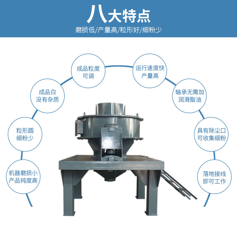 三、成品白: 因为靠原料自我摩擦,没有杂质,使原料越磨越白。