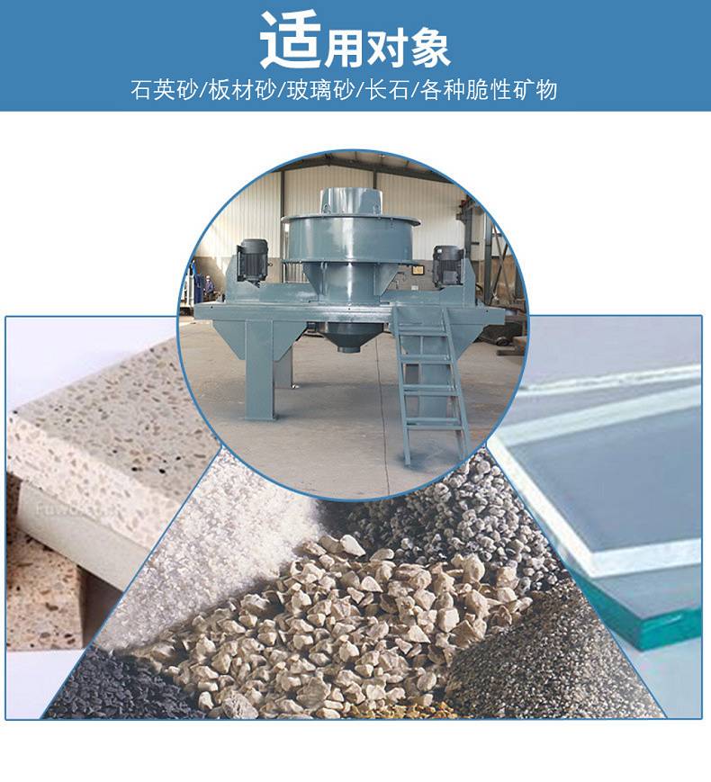 针对石英砂的特点,运用高速冲击的原理,巧妙地利用料打料的方式,实现了对类似脆性矿物的破碎,使得可粉碎矿物的中细碎和整型作业类型扩展到如下种类: