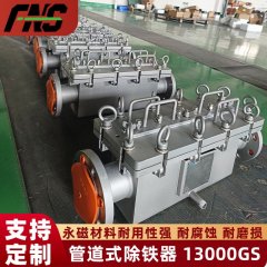 管道除铁器是一种用于液体或气体输送管道中的磁性过滤装置,主要用于吸附和去除流体介质中的铁磁性杂质(如铁屑、焊渣、锈蚀颗粒等),保护下游设备(如泵、阀门、喷嘴等)免受磨损或堵塞。其核心采用高性能钕铁硼磁体或电磁结构,提供强磁场吸附力,可安装在水平或垂直管道上,并配备法兰或螺纹接口以便于安装。部分型号支持手动或自动清理功能,适用于化工、食品、制药、水处理等行业,确保流体纯净度和生产安全