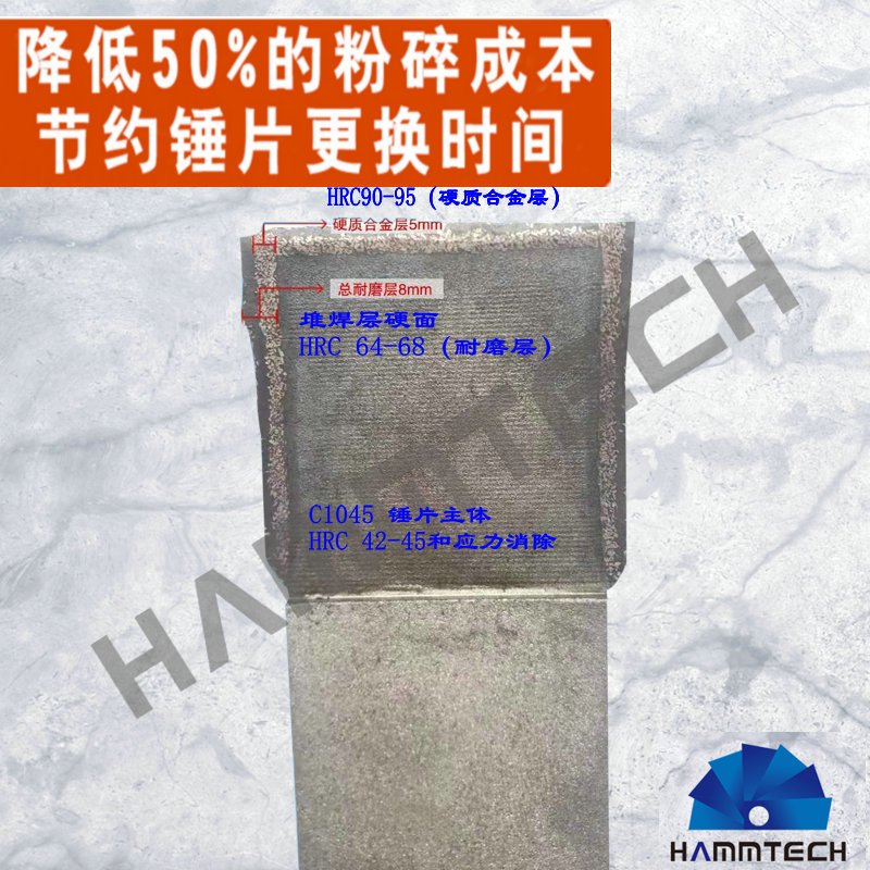 5.耐磨层:硬质合金高度达到5mm,耐磨总高度达到8mm。其使用寿命更长。根据客户使用数据证明;我们的锤片可以降低破碎成本,节约锤片更换时间。我们可以特殊设计制造双层耐磨的锤片,碳化钨层高度达到8mm,耐磨总高度达到12mm。