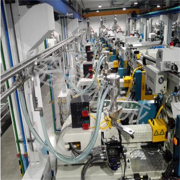 在中央式吸料机上运用独特的旋风气流装置,可以大量捕集原料粉尘。