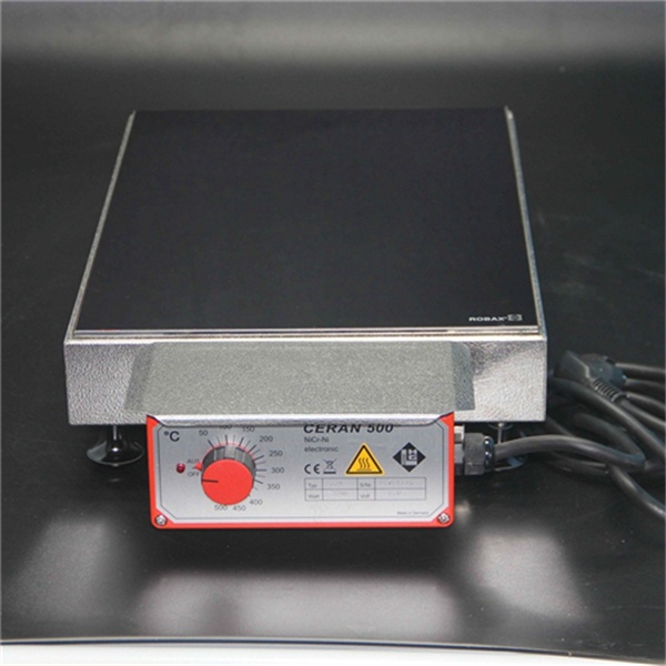 构造:CERAN固定在特殊不锈钢外壳上。内部绝缘、安全美观 。温度控制系统采用 NiCr-Ni温度传感器 (其调节范围在 50 and 500℃之间)。控制器是特制铝合金外壳。加热时间为500℃时约8分钟。四个支撑角可以单独调节,以确保热台平稳的放置。4SR型还配备了4四套插座夹具(插座与插座之间间隔250px),EB系列,控制器和热板之间的电气连接部分,有一金属软管保护,以使其更经久耐用。