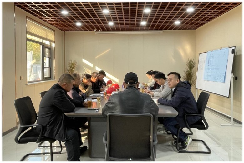2023 年 12 月 7 日上午 10 时,公司总经理秦伟组织各部门召开项目建设工作进度推进会。会前,工程项目总监陈建恒、生产总监曹国斌等人分别汇报了设备采购以及土建工程的工作进展情况,以及后期施工计划、设备采购计划等。 针对各部门的工作进展情况,秦总指出目前的实际工程进度已与原定进度要求脱钩,