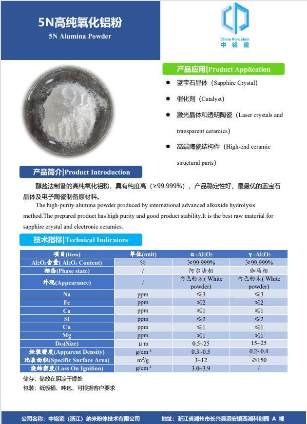 · 产品分类:根据纯度不同,可分为 3N(纯度 99.9%)、4N(纯度 99.99%)、5N(纯度 99.999%)等系列;根据晶型不同,可分为 α-Al₂O₃和 γ-Al₂O₃等,不同晶型的高纯氧化铝粉在粒径、比表面、松装密度等方面也存在差异。