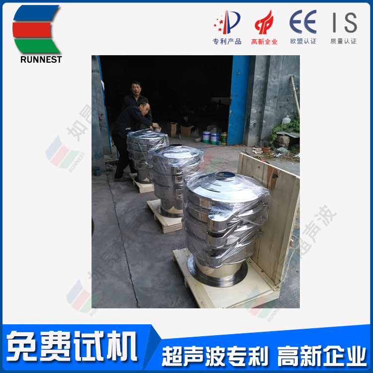 如昂超声波筛分系统由超声波谐振电源、振荡器、共振环组成。超声波谐振电源产生的高频电振荡由振荡器转换成高频三次元振荡波,这些振荡波传到共振环上使共振环产生共振,然后由共振环将振动均匀传输至筛面。筛网上的物料在做低频三次元振动的同时,叠加上超声波振动,既可防止网孔堵塞,又可提高筛分产量和质量。 RA系列超声波振动筛是本公司引进瑞士技术,研制出高精度、高稳定性的超声波振动筛分机。RA系列超声波振动筛使用自主设计的智能超声控制器,改变了单一频率带来不适应性和不可调性,真正实现数控与振动筛的有机结合,性能上达到和超过国际同类产品的水平、完全超越国内产品!RA系列超声波振动筛解决了强吸附性、易团聚、高静电、高精细、高密度、轻比重等筛分难题,具有**的性能!在性能上实现大的突破。RA系列超声波振动筛筛分精度可提高1-100%,产量可提高1-20倍;真正满足600目以上工业化生产需要!