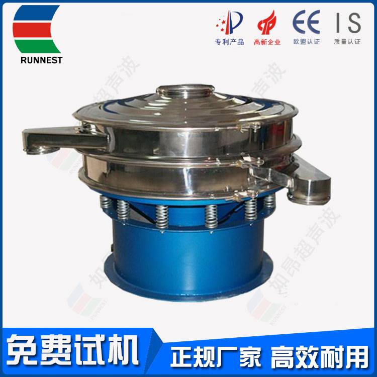 附加在RA系列超声波振动筛筛网上的超声振动波(机械波),使超微细粉体接受巨大的超声加速度,从而抑制粘附、摩擦、平降、楔入等堵网因素,提高筛分效益和清网效益。
