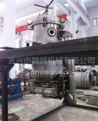 板式过滤机主要有过滤缸筒体、过滤缸盖和快开机构、不锈钢袋加强网等主要部件组成。该系列过滤机是一种压力式过滤装置。原液由进料口流入装置在加强网内的滤袋,受压,合格品渗透滤袋,由出料口排出,进入下道工序,杂质颗粒被滤袋捕捉。整个过程高效、简便,且更换滤袋十分方便,基本不产生物料消耗。