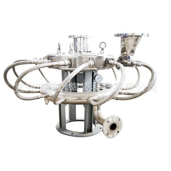 该机必须经配套组合后,方能形成生产能力。其配套组成一般是:空压机、空气冷却机、储气罐、滤油器(二级)、冷冻干燥装置、气流粉碎机,工作平台、加料装置、分级机(或旋风分离器)、捕集排气装置等组成。